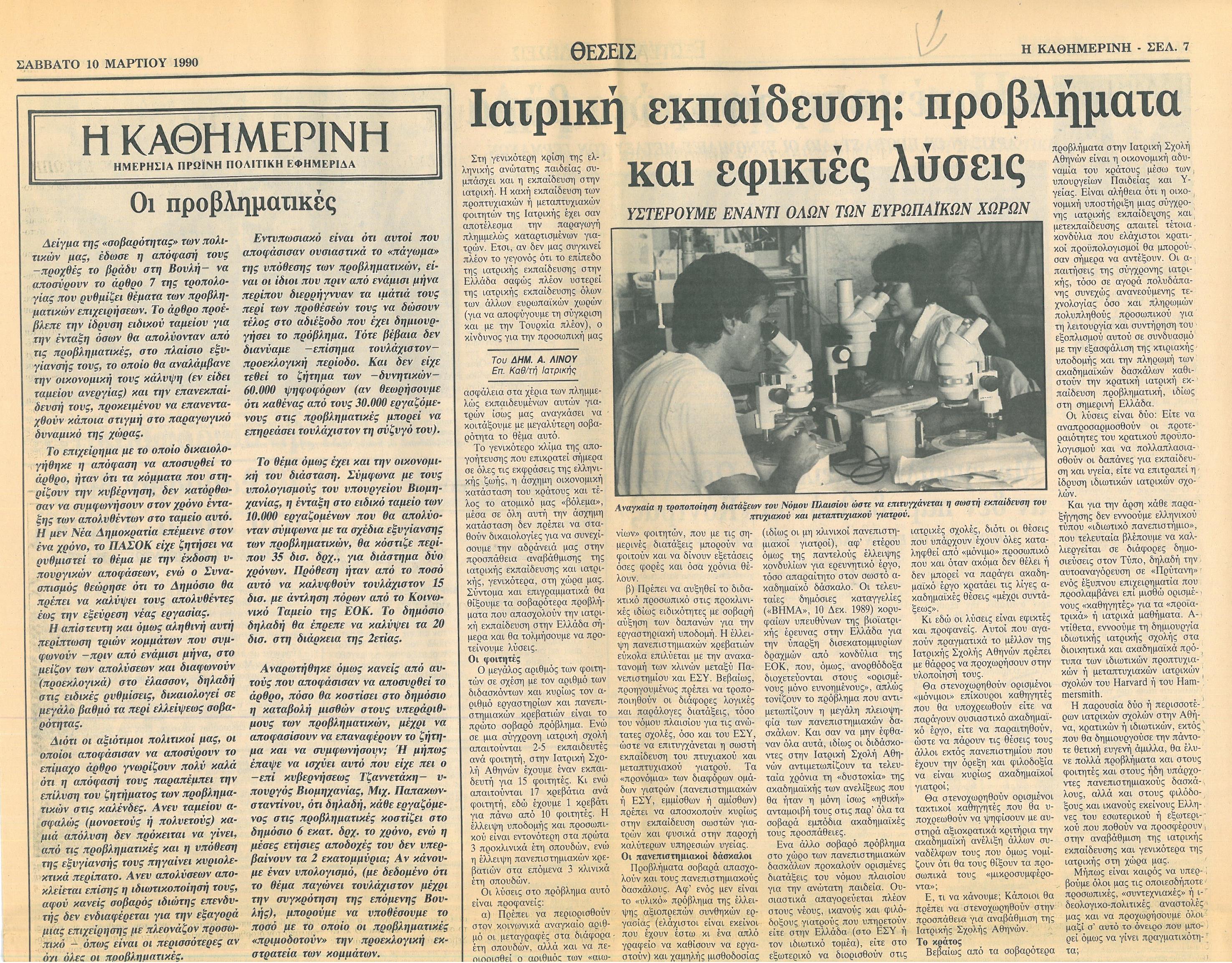 Αρθρο του Καθηγητή κ. Λινού στο περιοδικό «ΟΙΚΟΝΟΜΙΚΟΣ», «Ιδιωτικά ή δημόσια νοσοκομεία»21 Φεβρουαρίου 1995 11 Μαρτίου 1990