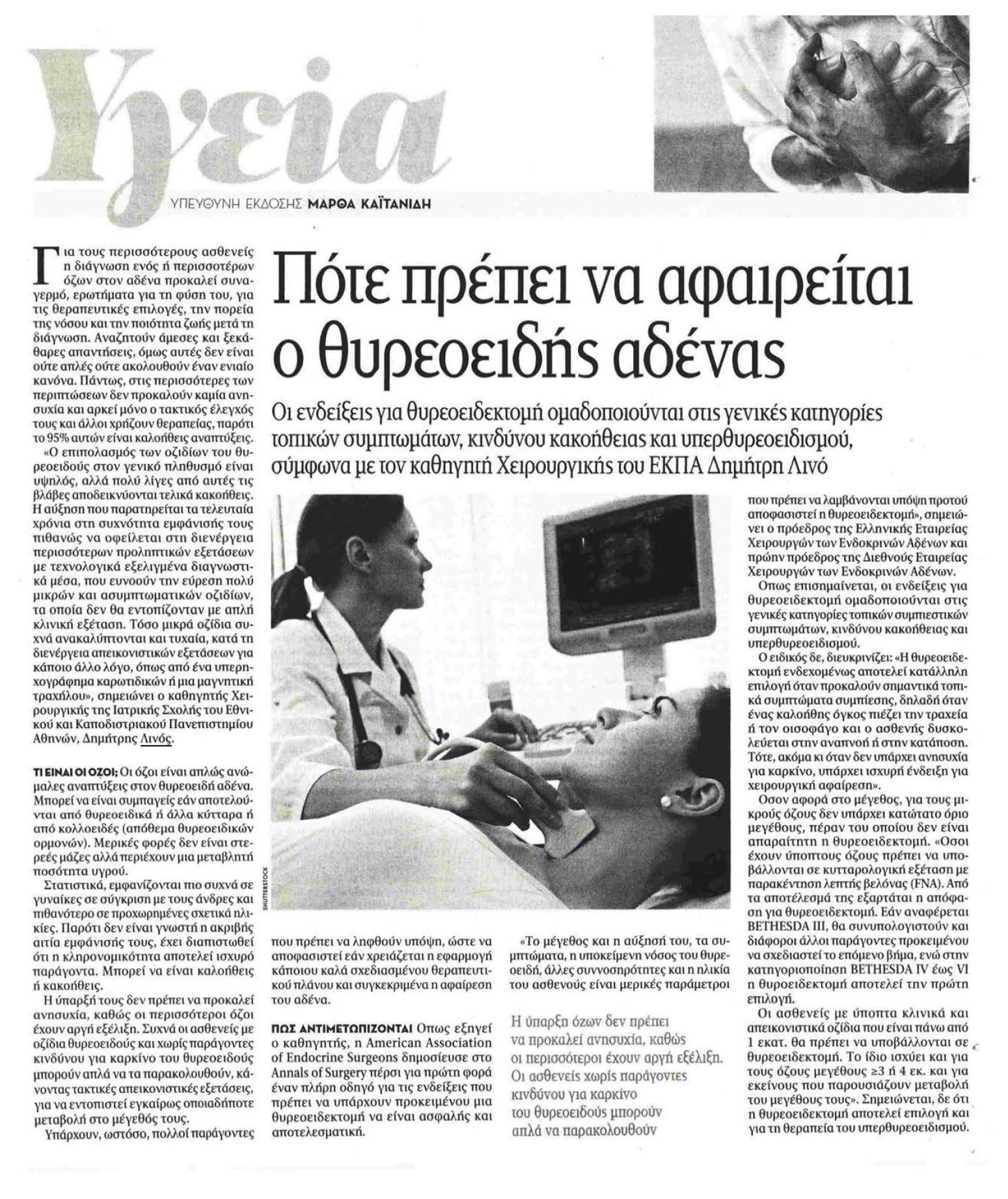 Άρθρο του Καθηγητή κ. Λινού στη στήλη “ΚΟΙΝΩΝΙΑ” της Καθημερινής: “Η επίταξη των ιδιωτών γιατρών”